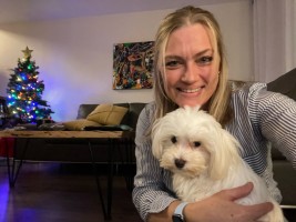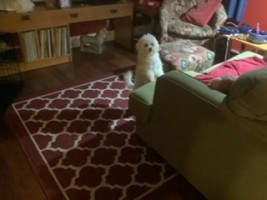Lulu est très active et est toujours prête à jouer et à essayer de nouveaux jouets.  Elle s'adapte très bien à notre vie et apprend rapidement. Elle demande déjà la porte en faisant sonner une cloche.  Elle est très mignonne et très drôle.