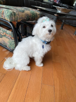 Merci encore Chantal et Kathy pour le bel accueil ce fut vraiment agréable. Notre beau petit Eddie est formidable, il écoute bien, calme et affectueux et déjà propre sur son pipi pad, ça ne sera pas difficile de lui apprendre à aller dehors. On ne regrette pas d'avoir adopté notre petit maltipoo de 9 mois, je n'ai pas hésiter d'adopter un chien plus vieux et je ne regrette vraiment pas, déjà tellement gentil et ça fait juste 2 jours avec nous.