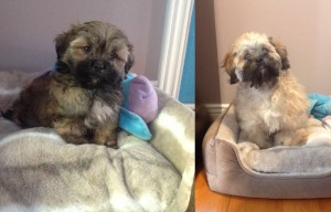Je vous ai mis en pièce jointe une photo qui date de 3 semaines, après son premier toilettage. C'est drôle car ses poils ont tendance à friser mais ça le rend encore plus cute!