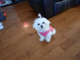Je cherchais un Bichon Maltais Teacup, j'ai fait ma recherche sur Google et j'ai vu 2 ou 3 adresses internet qui proposait l'adoption de chiots Bichon Maltais, mais pour avoir une chance d'en adopter un, je devais mettre mon nom sur la liste d'attente. Je cherchais un Bichon Maltais Teacup donc 4 livres et moins, hypoallergène, qui ne perd pas son poil, ne jappe pas pour rien, est déjà propre et prête à être adopté tout de suite. J'ai trouvé le site Paradise Ti-Pitou, et ce fut un coup de coeur. J'ai appelé Paradise Ti-Pitou et c'est un coup de coeur. L'éleveuse me confirme qu'elle a un Bichon Maltais qui répond à tous mes critères. Elle m'a écouté et a trouvé la perle pour moi. Puisque je ne voulais pas apprendre à mon chien de ne pas gruger, pas japper, pas mordre etc. Elle m'a proposé une femelle de 9 mois à 3 livres et demi. Elle m'a donné toutes les informations du chien. Elle m'a envoyé une photo et j'ai tombé amoureuse de la petite femelle. J'ai demandé 4 jours avant que je l'adopte, de la stériliser. Il n'y avait pas de place chez le vétérinaire et elle a repousser une opération d'un de ses chiens pour faire l'opération à mon chien. Elle et son équipe sont très accommodante et disponible pour toutes questions en lien avec mon chien. J'ai tellement aimé le professionnalisme de cette éleveuse et l'amour qu'elle donne à ses chiens que j'ai fait 3h30 de route pour voir ma Perla, je l'ai nommé ainsi car elle est très gentille, propre, ne jappe pas, poil doux et brillant, elle ne perd pas son poil, ne mort pas, le chien idéal pour moi. L'éleveur habite en campagne, les chiots et chiens sont bien élevés, mange de la bonne nourriture, sont joyeux. J'ai appelé l'éleveur et elle a répondu tout de suite. Je lui ai demandé si elle avait des Bichons Maltais pour adoption et elle m'a présenté mon chien, je ne l'ai pas prise tout suite car Perla devait venir à moi. Elle m'a montré comment là prendre. On a discuté pendant 3h00 le jour de sa fête et un samedi. Elle vend tout ce dont a besoin un chien et à très bon prix. Elle a même donné 3 jouets neufs gratuits à mon amie qui est venu avec moi et moi aussi en plus du sac qu'elle nous donne pour débuter avec le chien. Mon chien est tellement bien élevé que la séparation a bien été. Mon chien n'a pas pleuré, ni vomi tout le long du trajet de retour. Perla n'a même pas fait pipi ou des selles. Un vrai petit ange. Ensuite, je n'ai pas arrêté de poser des questions par texto a l'éleveuse car j'avais des questions en liens avec mon chien. Elle a répondu pendant qu'elle s'occupait du toilettage avec son équipe. Elle n'était même pas stressée ou fâchée de mon appel. On peut l'appeler tout le temps et jusqu'au décès de notre pitou. Je recommande sans hésitation cet éleveur exceptionnel, très attentionnée, à l'écoute des chiens et de ces clients. Elle est compétente. Moi je vie un rêve avec Perla, n'hésitez pas à prendre un chien plus vieux, si vous ne voulez pas vous occuper de toute son éducation. Voici une photo d'elle, elle joue déjà à des casses têtes, je lui ai montré une fois et elle l'a fait.