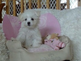 Un petit mot pour te dire combien nous sommes satisfaites moi amie Anne-Marie et moi de l’achat de nos petites chiennes caniche et bichon maltais.La réservation par virement bancaire s’est déroulé sans encombre et nous avons eu un très bon service quand nous sommes allés chercher nous petites poupounes. (beaucoup d’informations et de bons conseils). A notre arrivée, nos petites chiennes étaient toutes pomponnées et magnifiquement belles.  Elles sont toutes deux en excellente santé et très enjouées.La petite caniche est déjà propre à 100% et ma petite Molly l’est à 90%.  C’est très bien pour des chiots de 2 mois et demi.Voici une photo de ma petite Molly, elle a un excellent tempérament, je l’adore !!!