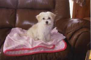 Je vous envoie deux photos de mon petit Bichon maltais que j'ai été chercher chez vous le 17 décembre, car nous avons eu le malheur de perdre notre petite bichon qui est morte une semaine après son arrivée à la maison. En échange, j'ai eu mon petit mâle surnommé Ti-Pou.