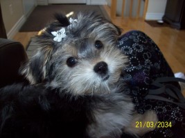 Le seul hic avec Bella c'est qu'elle pèse 7lbs et demi et elle n'a pas de gras de surplus. Elle est très loin de son 3 à 4lbs, elle en pèse le double. Bien qu'elle est merveilleuse c'est quand même une grande décpetion pour nous car nous voulions un très petit chien...