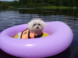 j'ai acheté un Bichon maltais à la fin mars 2010, c'est pour vous dire que je suis très satisfaite de mon achat. C'est un bon petit chien qui n'aboie pas pour rien, elle a présentement 9 mois elle pèse presque 5 lbs, elle est avec moi au travail toute la journée à mon bureau, je suis très chanceuse de pouvoir faire cela. Les clients l'aiment beaucoup elle est très sociable, elle joue avec tout le monde sans exception. J'ai donnévotre nom à plusieurs personnes. Je vous envoie quelques photos.