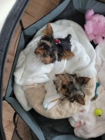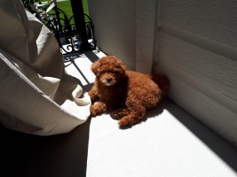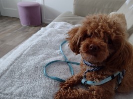 Comme vous le savez j’ai adopté un petit caniche toy en février dernier et je n’ai pu aller la chercher que le 22 mai à cause de problèmes de santé. Pendant tout ce temps vous en avez pris soin. Merci beaucoup !