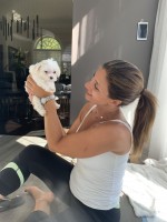 Elle court partout , mange très bien , fait ses besoin sur le pipi pad (avec quelque exception hehe) elle aime vraiment beaucoup (et vice versa) les garçons et joue avec toouuuuttteeeee la journée