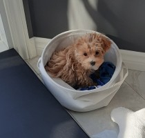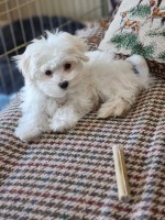 Merci encore Chantal et Kathy pour le bel accueil ce fut vraiment agréable. Notre beau petit Eddie est formidable, il écoute bien, calme et affectueux et déjà propre sur son pipi pad, ça ne sera pas difficile de lui apprendre à aller dehors. On ne regrette pas d'avoir adopté notre petit maltipoo de 9 mois, je n'ai pas hésiter d'adopter un chien plus vieux et je ne regrette vraiment pas, déjà tellement gentil et ça fait juste 2 jours avec nous.