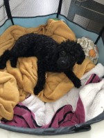 Voici une photo de notre petite Lilli dans le confort de sa maison qu’elle a elle-même organisée. Merci pour vos conseils pour le Pipipad et les sorties à l’extérieur. Ça va vraiment bien.