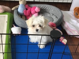 Je vous écrivais simplement pour vous donner des nouvelles de notre petit bichon maltais Charlie, que nous sommes venus chercher chez vous à la mi-mars. Tout se passe aujourd'hui très bien maintenant que nous avons trouvé notre petite routine (cela a fait un tel changement dans notre vie les premières semaines, cela n'était pas facile!). Simon et moi sommes toujours en télétravail, alors nous passons beaucoup de temps avec lui, même si on essaie de l'habituer à être seul. Il a maintenant presque 6 mois et c'est incroyable de voir son évolution: il connaît beaucoup de commandes, est presque 100% propre (un petit accident ici et là de temps en temps), marche en laisse, dort toute la nuit... je passe beaucoup de temps à faire du dressage. Avec l'adolescence, des petits comportements "indésirables" sont apparus mais c'est normal, alors on y travaille. Dans tous les cas, c'est un petit chien très enjoué, joueur et affectueux.