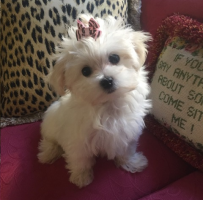 Je veux vous remercier, car vous nous avez choisi une  petite boule de bonheur! Notre Marie-Antoinette (comme la reine! mais c’est Antoinette pour les intimes!!)  s’habitue chaque jour à sa nouvelle maison. Elle découvre plein de choses! Elle est calme, enjouée et très affectueuse…. plein d’énergie à ses heures! L’entrainement sur le pipi pad va bien. Quelques petites erreurs ici et là, mais elle est pas mal extraordinaire. Elle comprend vite!