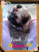 Notre petite Kira est toujours aussi adorable. Elle est très très colleuse donnes des bisous sans arrêt.... Bref, elle est une vraie p'tite guidoune. Nous sommes bien heureux de notre choix. Nicky notre, autre bébé de 12 ans très douce et patiente, laisse Kira se coucher ou s'accoter sur elle tout le temps.