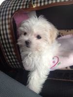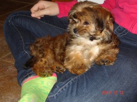 Voici notre belle Gucci! Nous l'adorons, nous sommes allés la chercher chez vous au mois de Janvier. Elle a été propre dehors en deux semaines à peine! Elle s'assoit, donne la patte, rapporte la balle, elle est super affectueuse et très intelligente. Elle comprend tout de suite quand nous lui disons un non. Les enfants l'adorent, ils peuvent jouer avec elle autant qu'il le veulent...Je peux aussi la bercer autant je le veux...C'est le meilleur chien que l'on pouvait avoir...Et le summum, c'est un chien qui rit! Quand elle est fière d'elle, elle peut nous faire un beau sourire, c'est tellement drôle! Aussi elle est non allergique car mon fils étant très sensible ne réagit aucunement à Gucci! Merci beaucoup pour tout tes bons conseils et ta disponibilité après vente pour nos différentes questions.Ce fut très apprécié!