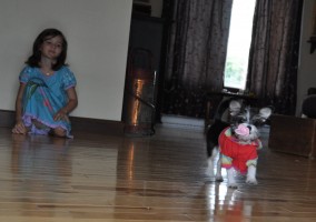 Comme promis je te fais un suivi de notre petite tannante de Missy! Nous l'adorons, elle est colleuse comme au début et elle me suit PARTOUT.. PARTOUT!!! J'aime un peu moins (franchement beaucoup moins) le fait qu'elle jappe ÉNORMEMENT!!!