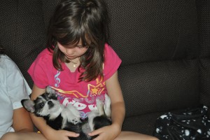 Voila notre lyly avec ma fille molly! Elle est adorable! Comme tu peux voir sur la photo, elle dort comme ça dans les bras de ma fille, on lui a même mis du cutex rose hihihi  Elle fait tout sur ses pipi pad, ne jappe pas, un vrai petit trésors qu'on adore. Elle suis ma fille partout partout partout, elle dort avec elle et tout les deux ce son créer un lien très fort. Elle l'apporte en carosse à chien, dans son sac pour le mettre sur sa bedaine et même en auto.Merci encore mille fois pour ton temps et ta patience et j'ai deux de mes amis qui en veulent des pareilles hihih. Alors écrit moi aussitôt que ta maman en a d'autre!