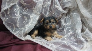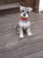 Je vous envoie quelque photo de James. Il va avoir 4 mois bientôt et il pèse déjà  10 lbs. C'est une moyenne tornade comparé à  notre ancien schnauzer, mais ça va assez bien.