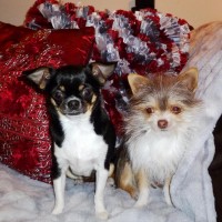 Un vrai show de les voir jouer ensembles. Roxy (chihuahua X bichon 4lbs) c'est la petite speedy, elle tant que ça bouge elle bouge...Téquila (chihuahua mexicaine 5 lbs) elle c'est notre grosse paresseuse,  frileuse...elle se tient collée sur le calorifère ou dans ma robe de chambre.