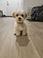 Merci pour votre accueil. Ti Bichon va très  bien. Il est propre et obéissant on est tous très heureux Voici une photo de nous deux.  Bonne continuation !!