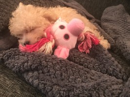 Comme vous le savez j’ai adopté un petit caniche toy en février dernier et je n’ai pu aller la chercher que le 22 mai à cause de problèmes de santé. Pendant tout ce temps vous en avez pris soin. Merci beaucoup !